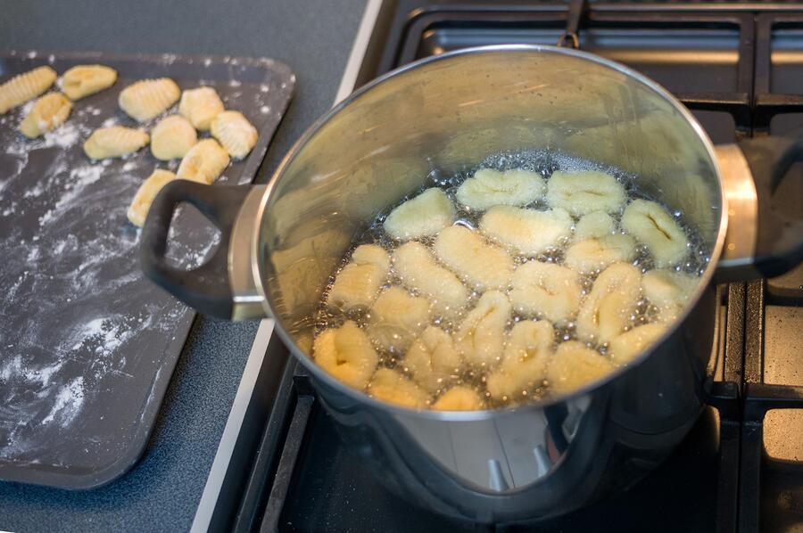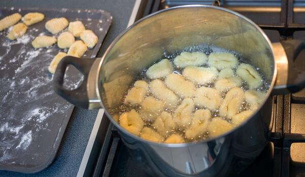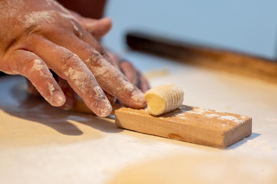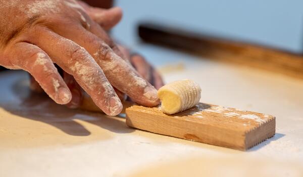 eventueel over een vork of gnocchiplankje om ribbels te maken. Dit helpt de